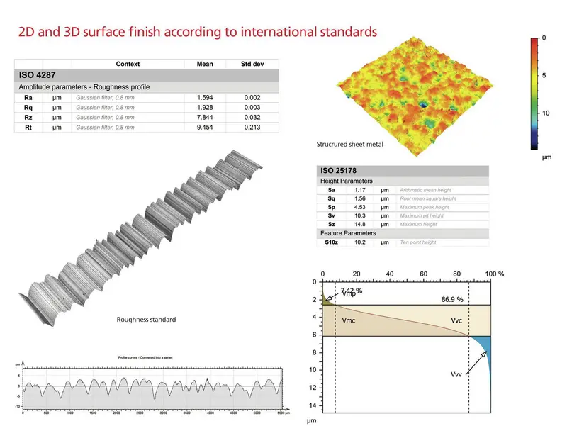 符合 ISO 25178 / ISO 4287 的 2D / 3D 轮廓及粗糙度测量