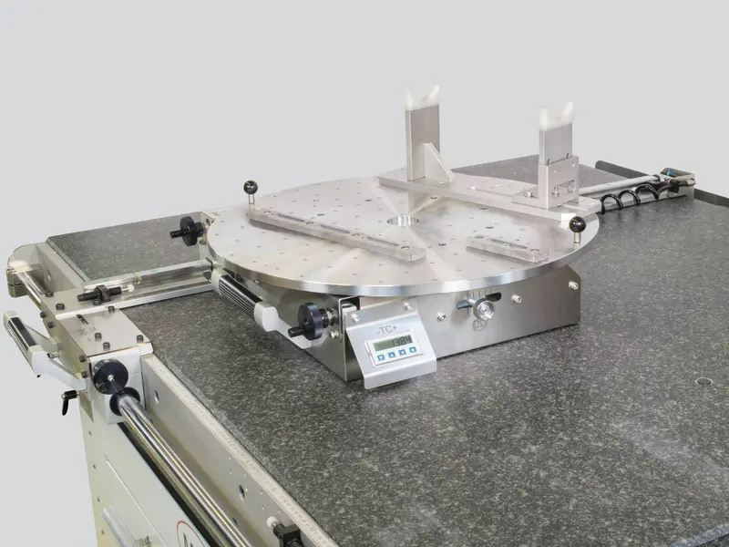定位系统的每个测轴都可以使用粗调和微调单独设置,并可使用锁定制动锁定。直径 600 mm 的旋转工作台和 50 mm 内测微螺旋的 M6 螺纹可以灵活地支撑各种工件。这样可在一个测量站上对多个工件完成各种测量任务。可以选择生产经过专门改装的附件。