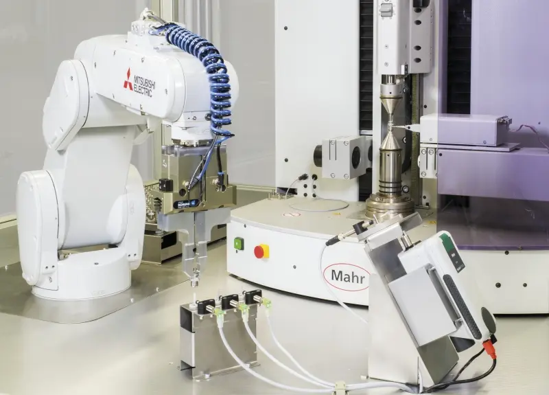 尽管现今的生产流程通常用来进行质量保证的时间更少,但仍要求获得可靠的结果。“正因此自动化测量成为质量保证领域的明显发展趋势,”Binder 说。原则上,Mahr 提供具有不同自动化程度的测量系统—用于在线生产工件时进行高达 100% 的随机抽样检查。两个示例: