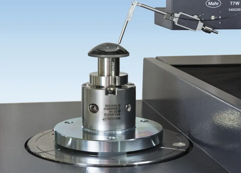 高准确度旋转轴圆度偏差仅为约 20 nm 的精确对准可实现对非球面准确且可重现的测量。为了精确测量 3D 表面特征轮廓,会在测量之前测量并重定向光学元件的顶点。因此,即使是夹持产生的最小误差也会得到补偿。动态实时补偿实现了机器的高准确度,并可防止外界影响的干扰。