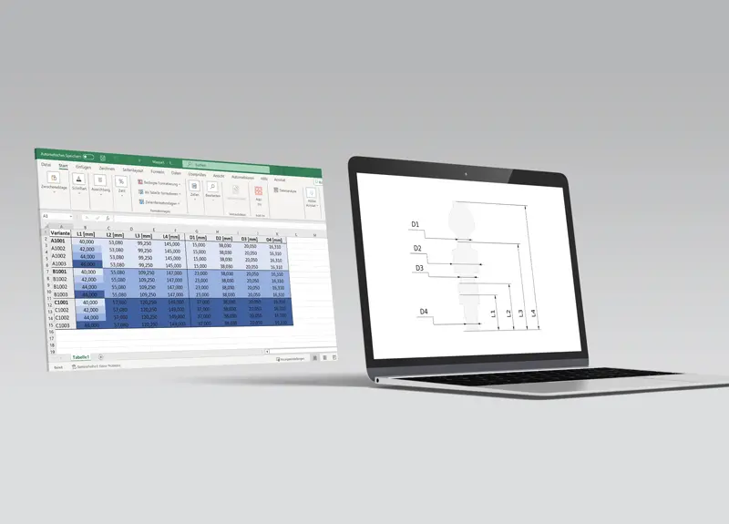 这就是它的工作原理:客户已有一个包含 4000 个部件测量值的数据库。该数据库通过 Excel 作为工件特性表读出。与此同时,Mahr 的程序员创建了一个测量程序模板。这样就可以在 Excel 中对先前读取的特征值进行三步乘法处理:MarWin EasyShaft 能够为每个工件自动创建测量程序,而无需额外的编程工作。光学直径、到平面的距离、半径和直径过渡、半径、圆度和同轴度都得到了检查。