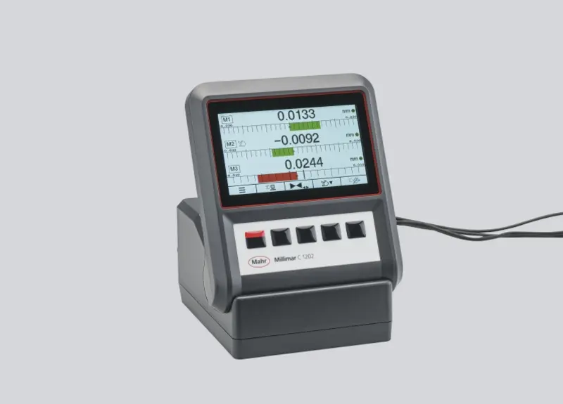 新的Millimar C 1202是新一代用于长度测量的多通道紧凑型仪器。由于其多功能的设计,如可倾斜读数的显示单元,清晰的菜单导航和灵活的测量值显示,它符合人体工程学,对用户很友好。与N 1700系列中的模块相结合,您可以得到适合您测量任务的测量仪器。由于其丰富的功能,C 1202有非常广泛的应用:您可以用它来解决各种测量任务,例如静态和动态测量,也可以进行锥度计算。此外,根据模块的不同,其他制造商的探头也可以兼容,这可以降低您的成本。
