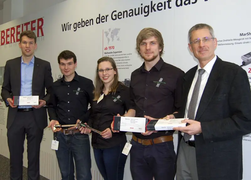 卡塞尔大力神赛车队的三位参赛者 3 月造访了我们的哥廷根工厂并参观了生产设施。我们为学生们提供了十个现代卡尺用于进行赛车制造。