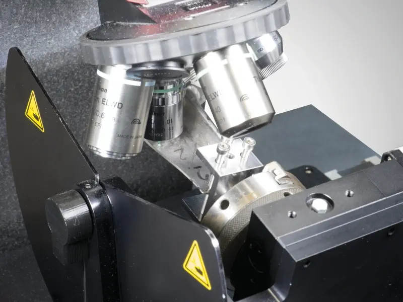 在显微测量系统中,通常要求待检验表面与透镜光轴进行正交对准。事实上,涡轮叶片的复杂几何结构会显著增加正交对准的复杂程度。对于在完全相同工件上进行的重复测试,明智地讲,这种测试只能通过 CNC 自动化测量站进行。Mahr 提供的配备 CNC 控制的倾斜/旋转装置的 MarSurf CWM 100 大幅度简化了测试。由于定位轴具有共计五度的自由度,因此几乎总是可以毫不费力地到达涡轮叶片上待测量的点—无论是叶片表面本身、叶片边缘还是冷却通道的出口。