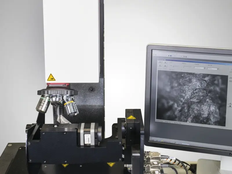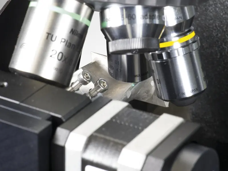 将 MarSurf CWM 100 光学 3D 测量系统作为共焦显微镜和白光干涉仪使用,它可以适应任何表面微观结构。在此情况下,还可以亚纳米分辨率非接触式地检测弯曲叶片表面上的各种测试点。
