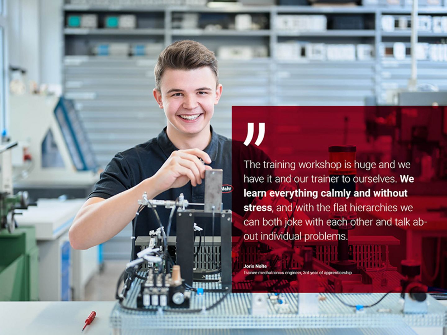 For many, good support from the trainer is also a decisive factor. Small training groups and the opportunity to discuss individual problems or questions with the mentor on a one-to-one basis are perceived as very valuable. A working environment that is suitable for learning is also important to young trainees. It is not always a question of loudness, but rather a stress-free atmosphere away from the everyday hustle and bustle. Mahr provides this through a training workshop in which only trainees and instructors are present and no external disturbances impede learning.